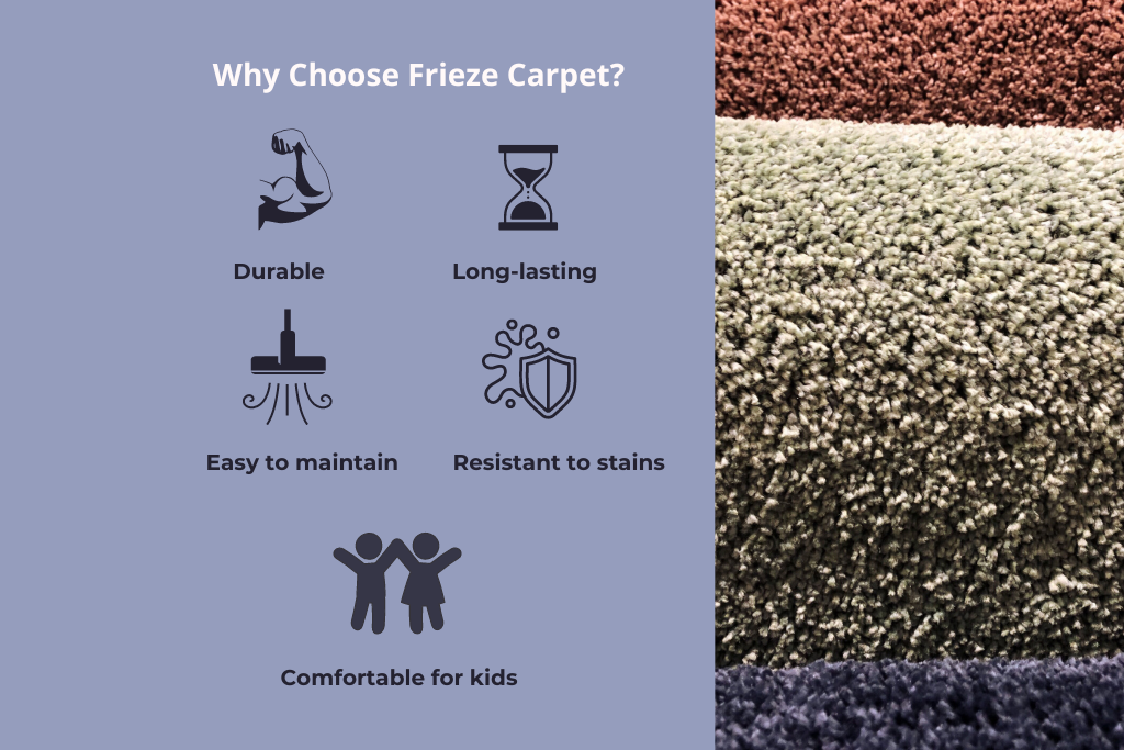 Frieze is good at camouflaging spills. It also resists matting and crushing, which makes it an excellent option for high-traffic areas.