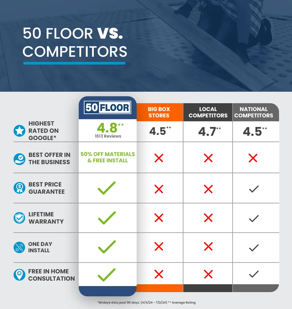 A free, in-home consultation with 50Floor is an easy and convenient shopping experience. You don’t have to leave the comfort of your home or spend time driving to the store because our flooring experts bring quality samples to you. Our professionals understand how to best fulfill your expectations by gaining information about your aesthetic preferences, lifestyle and budget. We offer valuable advice and tailored recommendations, helping you find the perfect options for your project.