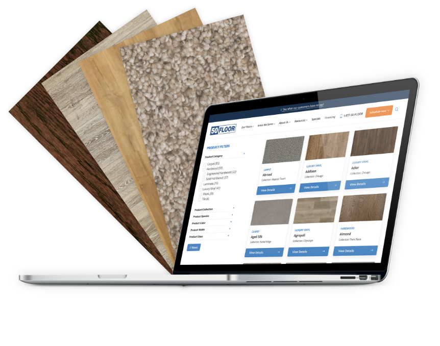 Choosing 50Floor means you’ll also get to take advantage of our seamless shopping process and professional vinyl flooring installers. For a personalized experience, we’ll bring you luxury vinyl floor samples so you can see exactly how each would look in your home with your lighting and decor.